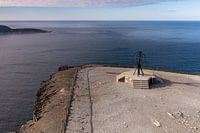 De noordkaap, het noordelijkst punt van het vasteland van Europa in Noorwegen. De globe is het monument wat daar staat en is het symbool voor de Nordkapp.