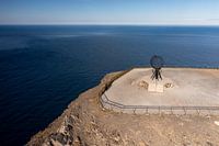 De noordkaap, het noordelijkst punt van het vasteland van Europa in Noorwegen. De globe is het monument wat daar staat en is het symbool voor de Nordkapp.