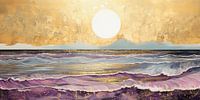 Een kleurrijk digitaal schilderij genaamd "De Noordzee in goud en paars" met een kleurenpallet met gouden en lila elementen. Het werk geeft een warme en klassieke uitstraling aan uw interieur!