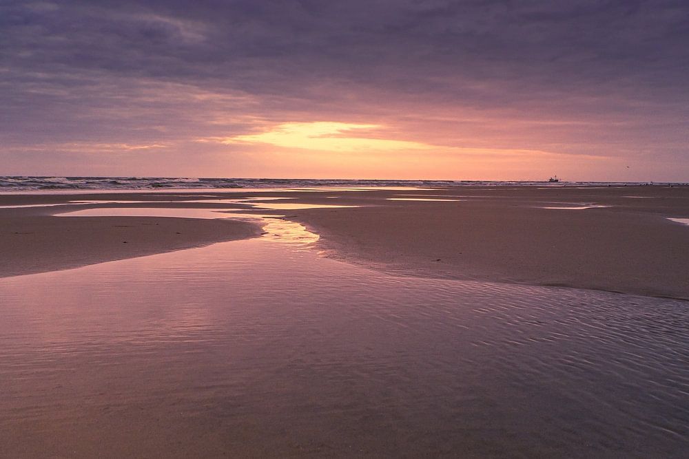 Woensdag 4 juni liep ik naar De Kerf. Onderweg zag ik al de effecten van eb en vloed. Achtergebleven zeewater in poeltjes , zandstructuren , de golvende lijnen. Dus die heb ik nog voor zonsondergang gefotografeerd. Zo krijg je minimalistische zeelandschappen.