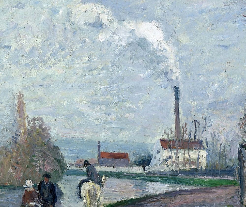 De Oise bij Pontoise in grijs weer, Camille Pissarro