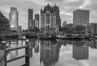 De Oude Haven in Rotterdam na zonsondergang in zwart-wit.