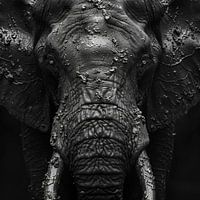 De monochrome tinten voegen een tijdloze kwaliteit toe aan het stuk, waardoor kijkers worden uitgenodigd om stil te staan bij de vergankelijkheid van het leven en de eeuwige schoonheid die in elk moment bestaat. Het oog van de olifant lijkt een poort naar een andere wereld, waarin eeuwenoude geheimen en verborgen verhalen schuilen. De blik is zowel ontzagwekkend als intiem, alsof de olifant zijn ziel met ons deelt.