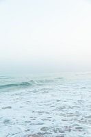 Waar het water het land kust. Een minimalistische compositie die focust op de textuur van het zoute schuim en de oneindige herhaling van de golven. Deze print is perfect voor een modern, licht interieur en zorgt voor een kalme, luchtige uitstraling.
