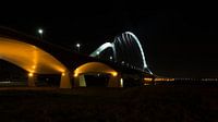 De Oversteek, de moderne brug over de Waal bij Nijmegen, een prachtig verlicht object voor nachtfoto's.