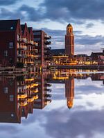 Koop de foto De Peperbus van Zwolle gespiegeld in de gracht van Meindert Marinus op canvas, aluminium dibond, (ingelijste) fotoprint, behang en ArtFrame, op maat geprint in Fine-Art kwaliteit.