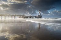De Pier van Scheveningen tijdens een mooie zonsondergang. Het licht kwam mooi door de bewolking heen en scheen de Pier aan. De reflectie zorgt voor rust in het beeld.