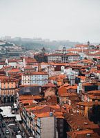 De prachtig gekleurde Portugese stad Porto in de winter mist gaf een mysterieus beeld over de stad.