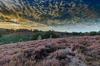 Zonsondergang boven de Posbank met de in bloei staande heide, een uniek stukje Nederland.