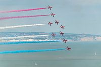 De Red Arrows van de Royal Air Force in actie tijdens de Eastbourne International Airshow in 2014.