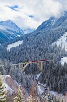 De Rhätische Bahn op het Langwieser Viaduct bij Arosa in Graubünden, Zwitserland.