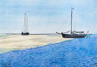 De Richel Vlieland Droge zandbank Wachten op de vloed, kokkels zoeken. Gemaakt tijdens een workshop 2019