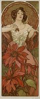 De Robijn, Alphonse Mucha (1900) Alfons Maria Mucha, internationaal bekend als Alphonse Mucha, was een Tsjechische schilder, illustrator en graficus, die in Parijs woonde tijdens de Art Nouveau periode. Hij is vooral bekend om zijn uitgesproken gestileerde en decoratieve theateraffiches, met name die van Sarah Bernhardt. Hij maakte illustraties, advertenties, decoratieve panelen en ontwerpen, die tot de bekendste afbeeldingen van die periode behoorden.
