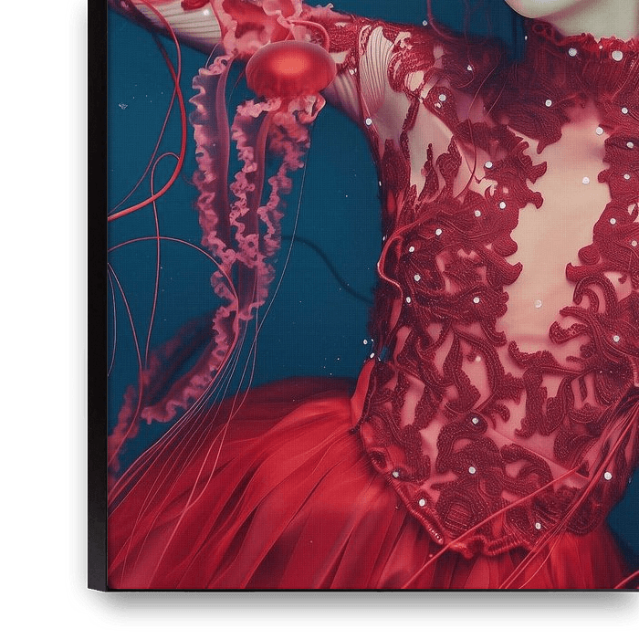 Koop dit abstracte kunstwerk De Rode Kwallenvrouw | Modefotografie van Frank Daske | Foto & Design op canvas, aluminium dibond, (ingelijste) fotoprint, behang en ArtFrame, op maat geprint in Fine-Art kwaliteit.