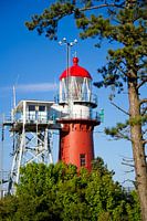 De vuurtoren van Vlieland bevind zich op het hoogste punt van het eiland, Vuurboetsduin. De officiele naam van het baken is "De Vuurduin", maar in de volksmond wordt het ook wel de "Rode Kabouter" genoemd. Ik heb de foto vanuit het nabij gelegen bos genomen, om zo de rode toren een mooi contrasterend groen kader te geven.