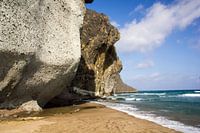 Een verlaten strand aan de rotsachtige kust van Cabo de gata in Almeria, Spanje