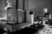 Koop de Rotterdam foto 'De Rotterdam' by night van Pieter Wolthoorn als print op canvas, aluminium dibond, (ingelijste) fotoprint, behang en ArtFrame. Voor jou op maat geprint in Fine-Art kwaliteit.