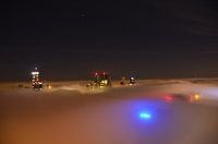 Rotterdam gefotografeerd in de avond, vanaf the Red Apple, uitkijkend op de Erasmusbrug, de Rotterdam, New Orleans, Montevideo, de Maastoren en het World Port Center. De stad is bedekt onder een laaghangende mistwolk hetgeen resulteert in een prachtig effect en reflectie van de stadsverlichting.