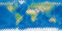 Deze Ruitenaardse Wereldkaart is opgebouwd uit 784 ruiten, elk met de gemiddelde kleur van het betreffende gebied. Hoe abstract het resultaat ook is, opvallend genoeg zijn er nog steeds kenmerken te onderscheiden: de Amazone, de Sahara, Groenland, de Middellandse Zee , de Himalaya. En natuurlijk de zeven continenten. De overgangen tussen de ruiten zijn licht aangezet, waardoor een aquarelachtig effect ontstaat.