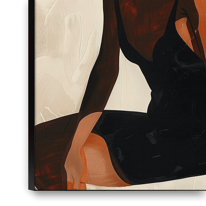Dit kunstwerk vangt een serene en introspectieve sfeer door de weergave van een vrouwelijk silhouet.