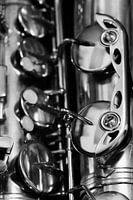 De oude saxofoon - gedrukt in monochroom ziet hij er nobel en tijdloos uit.