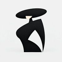 Gestileerd silhouet van een curvy vrouw in een zwarte jurk en hoed, tegen een witte achtergrond; minimalistische, grafische compositie die elegantie en schoonheid viert — fine art print.