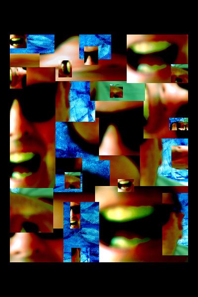 De Schreeuw/The Cry. Uit een serie van 25 mozaïeken met verschillende foto's. De werken zijn analoog gemaakt zonder kunstmatige intelligentie (AI).
