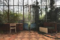 Een serre nog deels ingericht, maar toch verlaten. Een mooie locatie voor een dinner of een goed feest. Tegenwoordig voor de meesten een obstakel ergens tussen de begroeiing, niet iedereen is het daarmee eens.