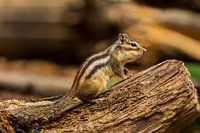 De Siberische grondeekhoorn, Boeroendoek, Koreaanse grondeekhoorn of Aziatische gestreepte grondeekhoorn (Tamias sibiricus) zittend op een tak in de zomer