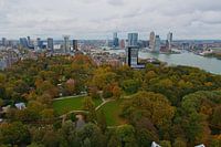 Wat een prachtig uitzicht heb je vanaf de Euromast Rotterdam. Met helder weer kun je de hele haven zien, maar ook het contrast tussen de herfstkleuren van het park met daarachter de prachtige skyline van gebouwen en bruggen.