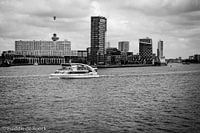 De Rotterdamse skyline op zijn best. De hoge gebouwen langs de Maas en met de Euromast op de achtergrond maken dit plaatje tot een echt Rotterdams