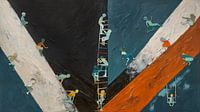In dit werk zie je kinderen die rennen, klimmen, schommelen en zich laten vallen. Ze bewegen door een abstract landschap van diagonale vlakken en een centrale ladder, een metafoor voor het leven zelf. Net zoals deze kinderen, blijf ik als kunstenaar steeds nieuwe dingen leren en probeer ik mijn werk en mezelf te laten groeien.
