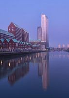 De Spoorweghaven in Rotterdam op de Kop van Zuid tijdens het blauwe uur