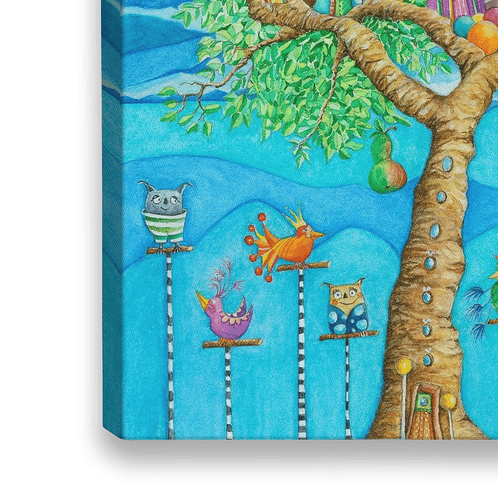 Koop dit vogel kunstwerk De Sprookjes Boomhut van Sonja Mengkowski op canvas, aluminium dibond, (ingelijste) fotoprint, behang en ArtFrame, op maat geprint in Fine-Art kwaliteit.