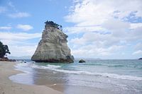 De Te Hoho rots bij Cathedral Cove in de buurt van de stad Hahei op het Coromandel schiereiland in Nieuw-Zeeland. Het duurde een eeuwigheid voordat ik een foto kon maken zonder mensen erop, maar het was het allemaal waard.