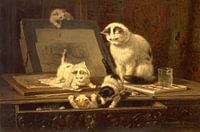 Het schilderij "De Teekenaars" van Henriëtte Ronner-Knip is een beroemd werk van deze Nederlandse kunstenares. Het is geschilderd rond 1870 en toont katten die bezig zijn met het tekenen van een prent. De katten zijn afgebeeld met zachte, vloeiende lijnen en heldere kleuren, wat de schoonheid en het speelse karakter van het dier benadrukt. Het schilderij is een liefdevol en intiem portret van katten die bezig zijn met een creatief project en geeft een gevoel van warmte en verbondenheid. Het is een klassiek voorbeeld van Ronner-Knip's werk en haar liefde voor huisdieren.