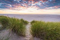 De prachtige Texelse witte duinen tijdens zonsondergang. Het uitgestrekte strand van Texel met een fijne witte zand. Met een kleurrijke zonsondergang is het er echt genieten!