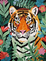 Dit kunstwerk brengt de tijger tot leven op een moderne en kleurrijke wijze, waarbij de details van de vacht en de ogen een hypnotiserend schouwspel vormen. De levendige kleuren voegen een extra dimensie toe aan de krachtige uitstraling van de tijger, waardoor een opvallend en krachtig kunstwerk ontstaat.