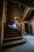 Als een ware bruid beklom ze deze oude eikenhouten trap van een verlaten kasteel. Langzaam gleed haar sluier af, waarna deze op de treden achter bleef.
