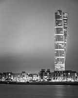 De Turning Torso in Zwart-Wit, een neo-futuristische woonwolkenkrabber in Malmö, Zweden en het hoogste gebouw in Scandinavië. Ontworpen door Santiago Calatrava.