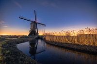 De Uitwijkse molen in Sleeuwijk is een eeuwenoude molen die in de nacht magisch oogt. De donkere hemel is gevuld met duizenden sterren, die schitteren als kleine diamanten. De molenzaal staat majestueus op de voorgrond, met de sloot eromheen. Een schilderachtig landschap dat je ademloos laat staren.