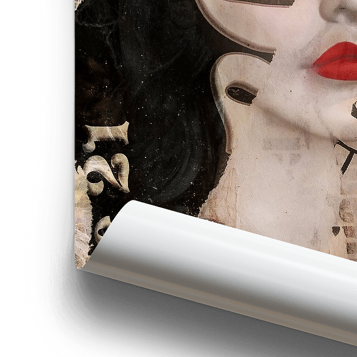 Koop dit abstracte kunstwerk De Venetiaanse schoonheid met rode lippen van Gabi Hampe op canvas, aluminium dibond, (ingelijste) fotoprint, behang en ArtFrame, op maat geprint in Fine-Art kwaliteit.