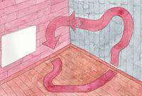 Dit werk maakt deel uit van mijn huidige reeks 'Denkbeeldige Kamers'. Deze reeks werken ben ik begonnen in november 2005 bij het bezoek aan een vriend die een surrealistisch schilderij aan de muur had hangen. Het gebruik van symbolen om te communiceren met de kijker nodigde me uit om deze reeks te beginnen.