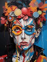 Dit schilderij uit de collectie 'Het Ontsluiten van de Geheimen van de Ziel' kijkt in de diepten van de menselijke ziel met doordringende ogen. Het vangt de essentie van zelfontdekking en introspectie, waarbij kijkers worden uitgenodigd om de raadselachtige uithoeken van hun eigen innerlijke wereld te verkennen.