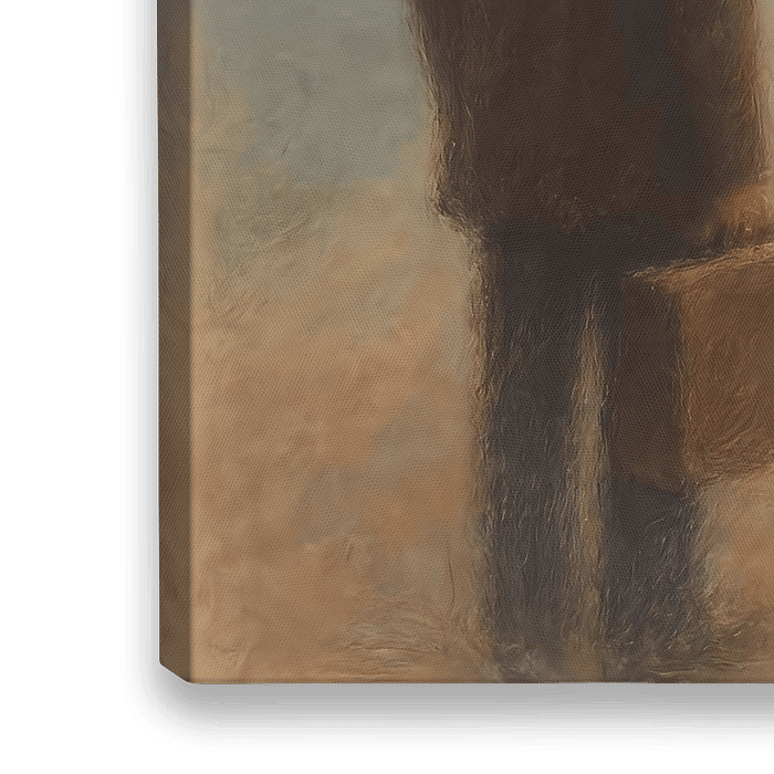 Dit kunstwerk maakt deel uit van de serie “Moments of Pause”, een reeks verstilde, symbolische beelden die momenten van wachten, vertrek, reflectie en overgang verbeelden. Elk werk toont een alleenstaande of bijna alleenstaande figuur in een ruimtelijke, beschouwende omgeving.