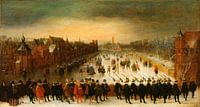 De Vijverberg, Den Haag, in de winter met prins Maurits en zijn gevolg in de Voorgrond, Adam van Breen