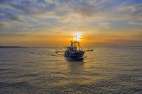 Vistrawler SCH-45 "Jacob Cornelis" vist aan de kust van de Maasvlakte tijdens de zonsondergang van de toen warmste dag in jaren.