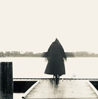 De foto is gemaakt in Geestmerambacht. Een duistere foto van een visserman.