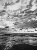Na zonsondergang is er nog genoeg te zien aan de vloedlijn op het strand van Texel bij paal 9. We zien een stormbreker met daarop een grote groep meeuwen azend op een lekker hapje. Hier heb ik een langere sluitertijd gebruikt, waardoor de golven en de lucht een beetje richting krijgen. Zwart Wit vind ik hier goed werken, omdat de…