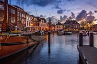 Een prachtige zonsopkomst in de Haven van Leiden. De straatverlichting staat nog aan en de sfeer is schilderachtig. Een mooi tribuut aan een beeldschone stad met rijke historie.